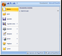 Para crear una presentación nueva desde una plantilla, vaya al botón de Office y seleccione la opción Nuevo.